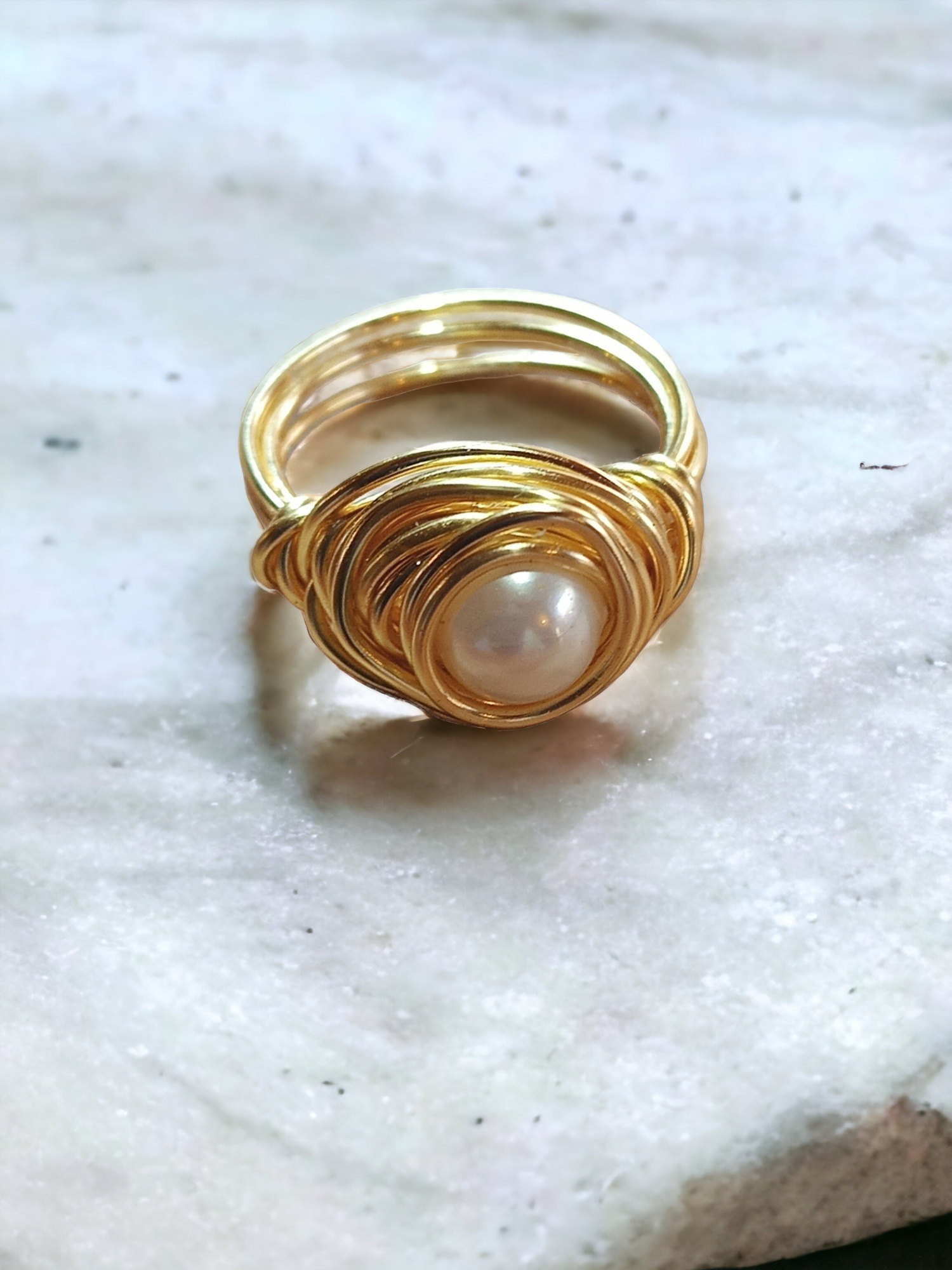 Anillo alambrismo con perla de rio hecho a mano diseño by Little Lucy alambre triple A hecho en USA Hipoalergenico