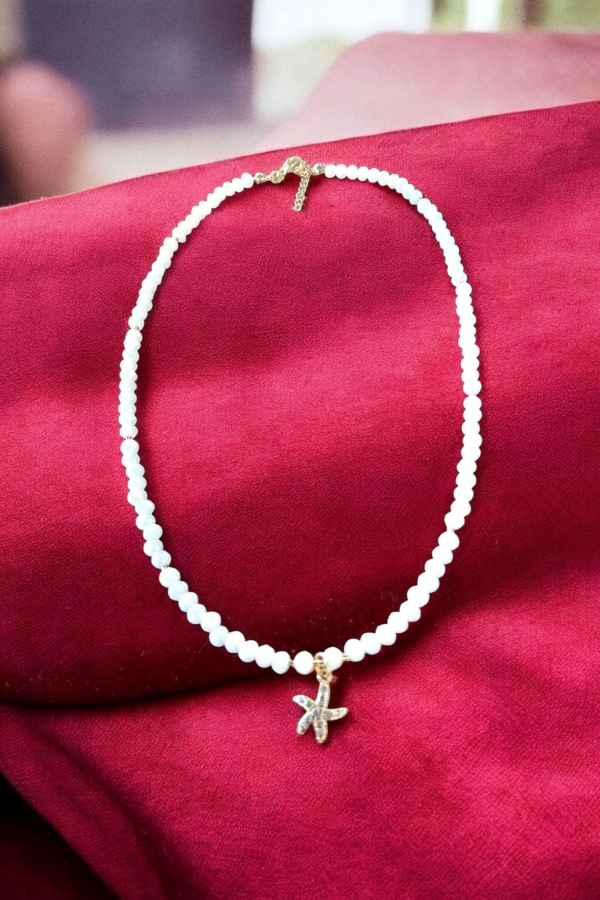 Bello collar de cristales checos con colgante estrella de mar con circones todos los componentes dorados baño de oro 18k hipoalergénico libres de níquel.